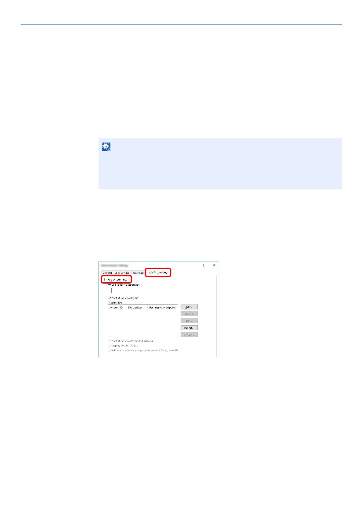 1 Select [Job accounting] on the [Job Accounting] tab.