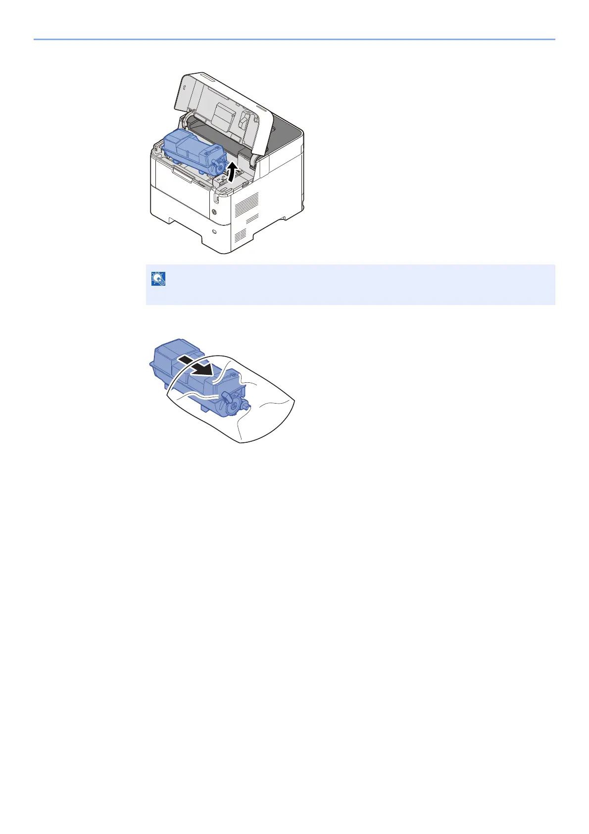 When removing the toner container from the machine, lift up the right hand side first.