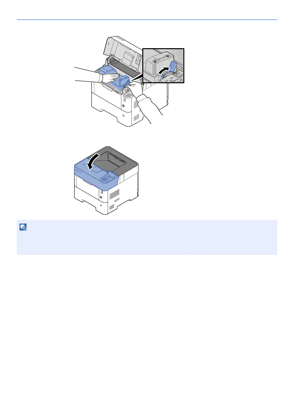 If the Upper Tray does not close, check that the new toner container is installed correctly (in step 6).