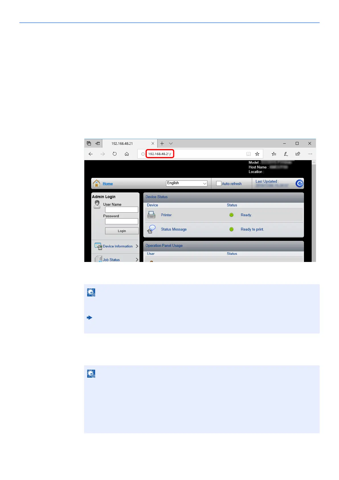 To fully access the features of the Embedded Web Server RX pages, enter the User Name