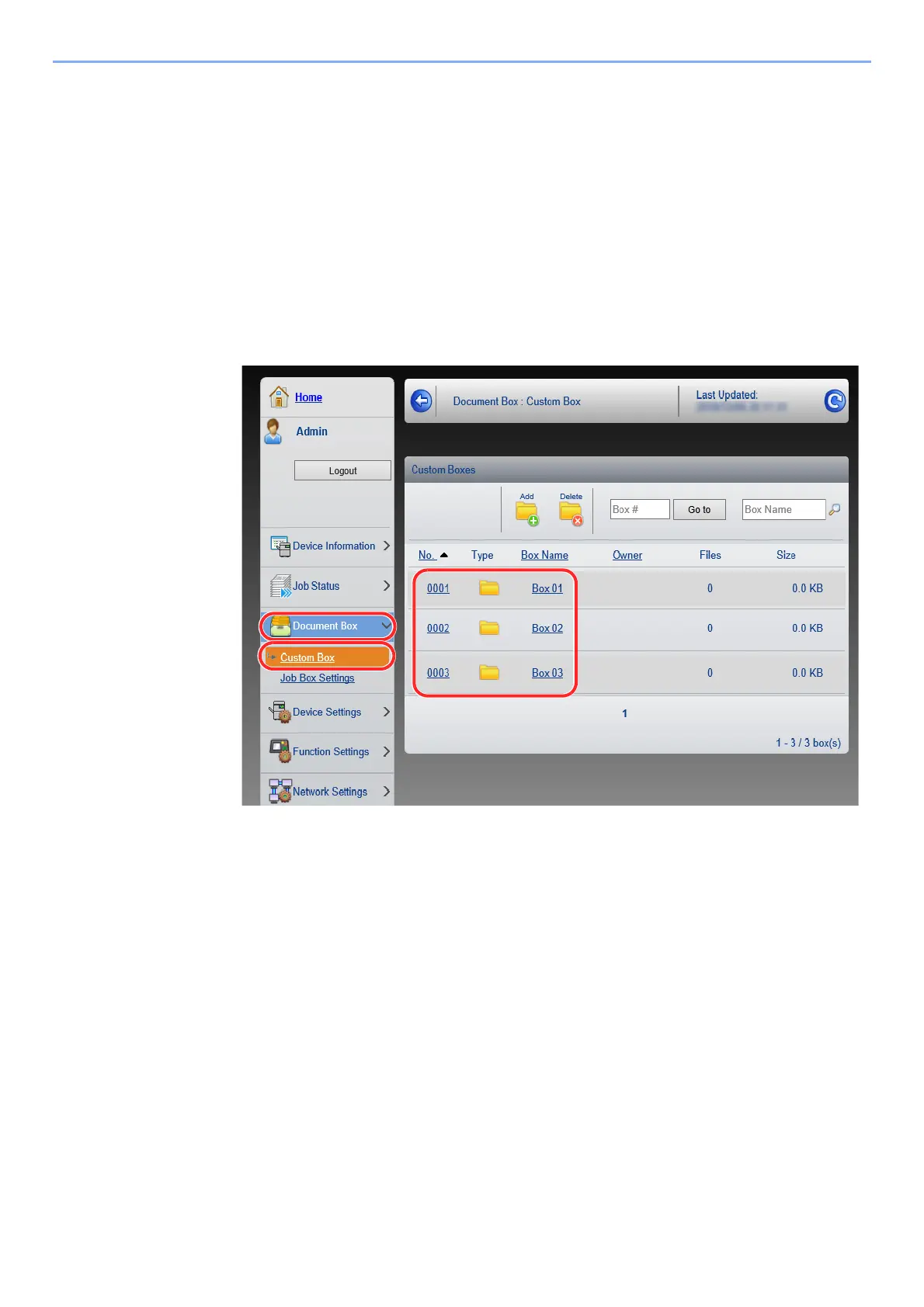 3 From the [Document Box] menu, click [Custom Box].