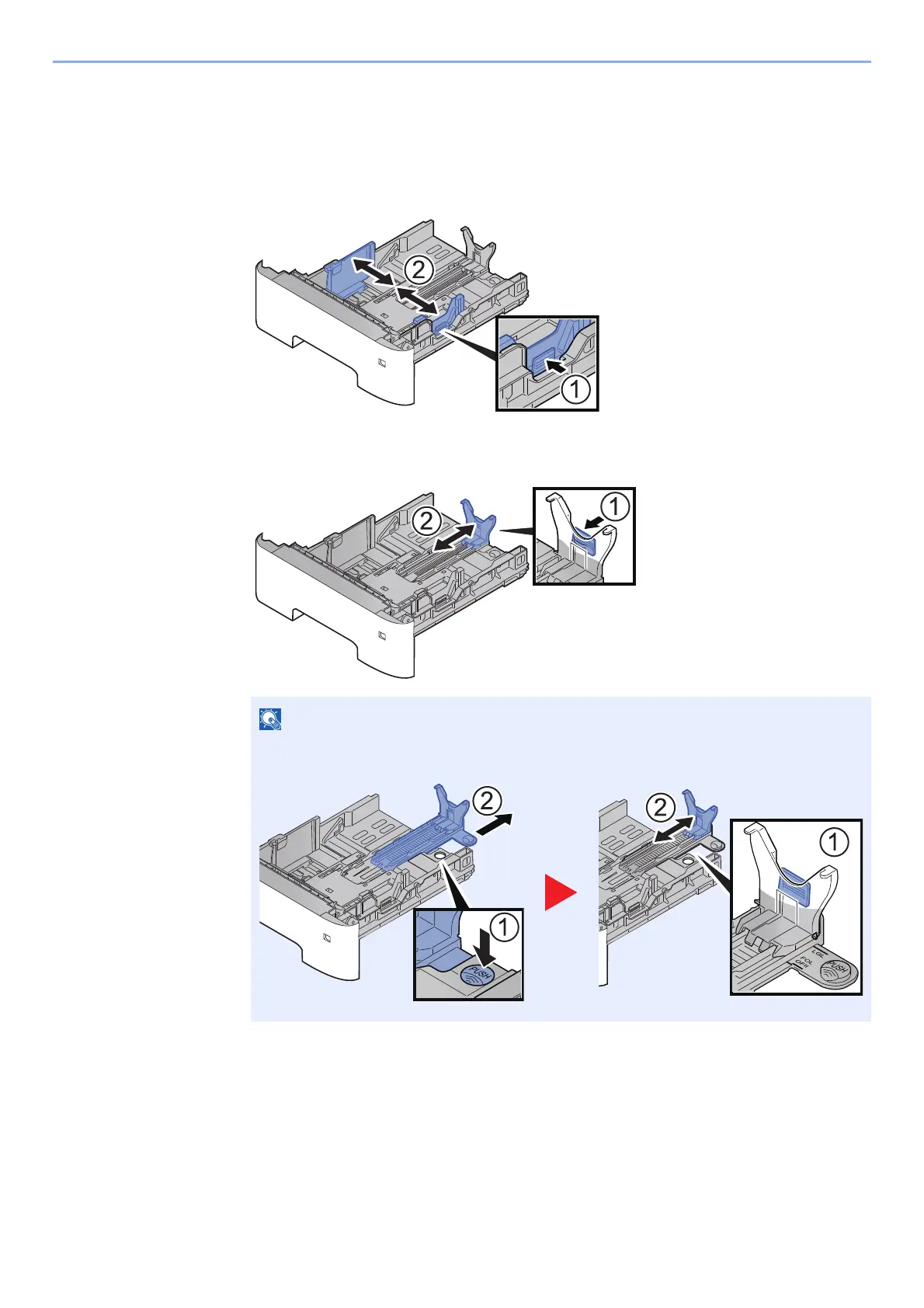 cassette. Press the paper width adjusting tab and slide the guides to the paper size
