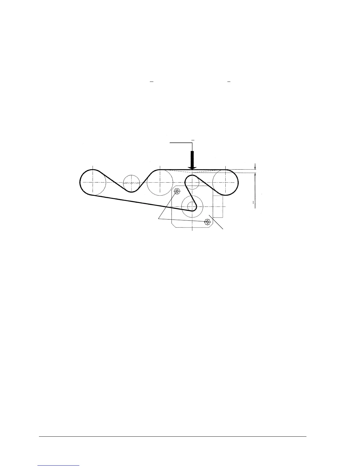 The tension of timing belt (1) must sag 2.9 + 2 mm when applying 200 gr + 2 gr at the center of the lower
