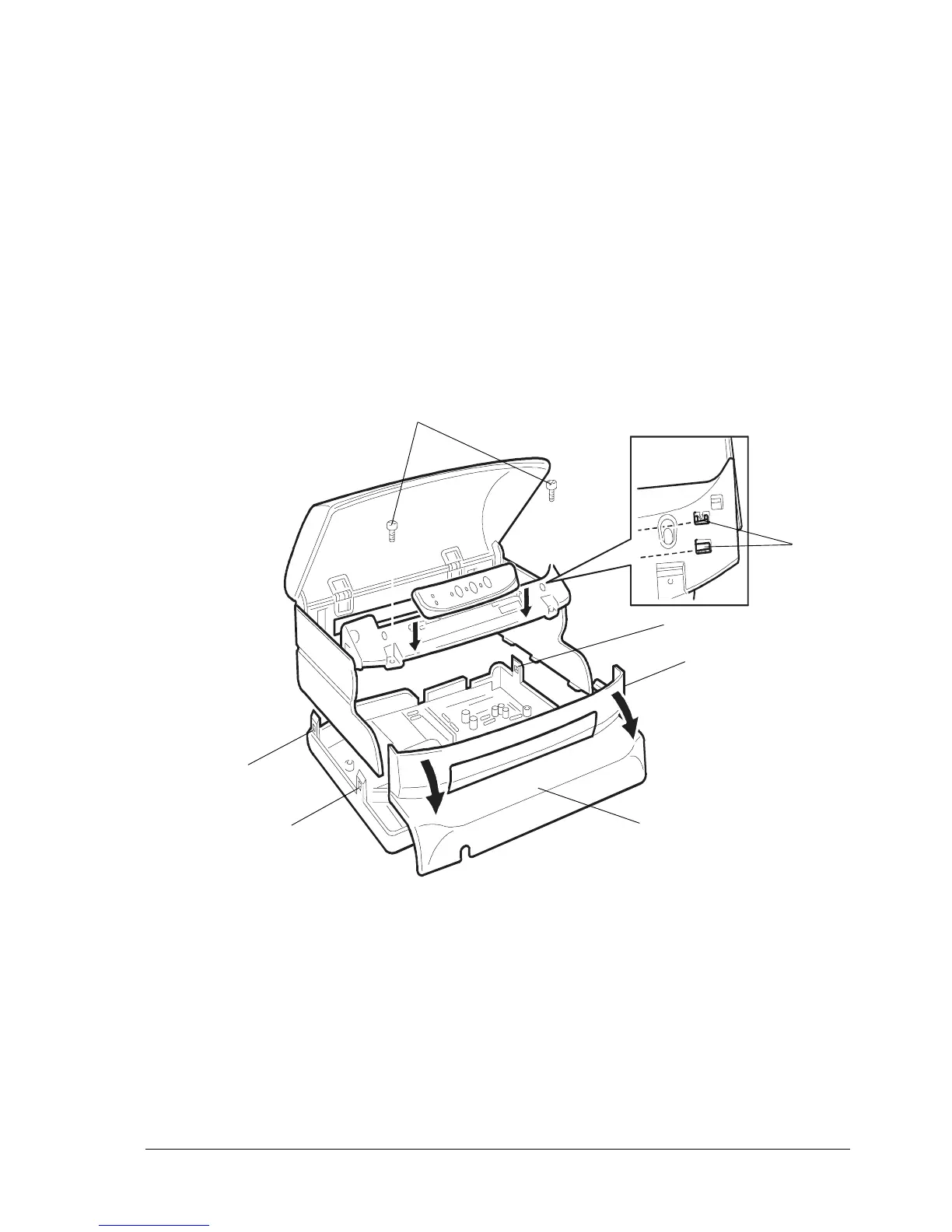 - Using a flat-blade screwdriver, release the case's two front snap features (3).