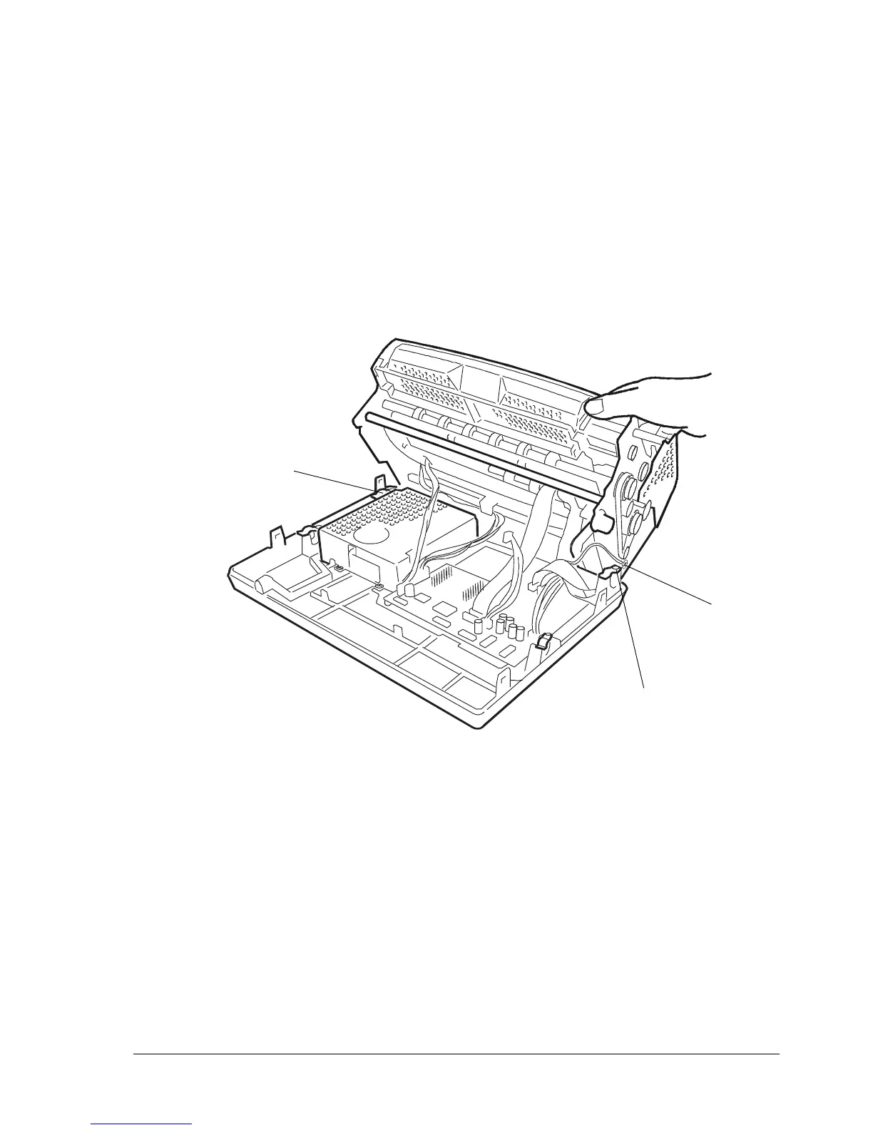 - Lift the front part of the mechanical assembly off the base of the printer, partly rotating it until you are