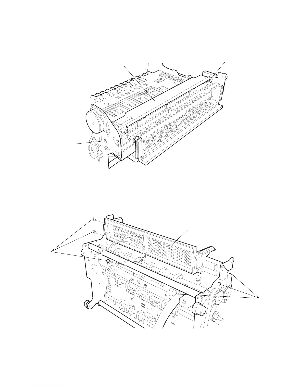 - Remove the six screws (7) that secure the conveyor assembly (8).
