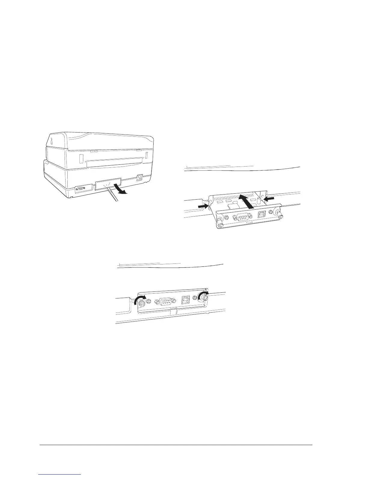 - Using a screwdriver, break off the slot cover of the optional serial interface on the rear of the printer.