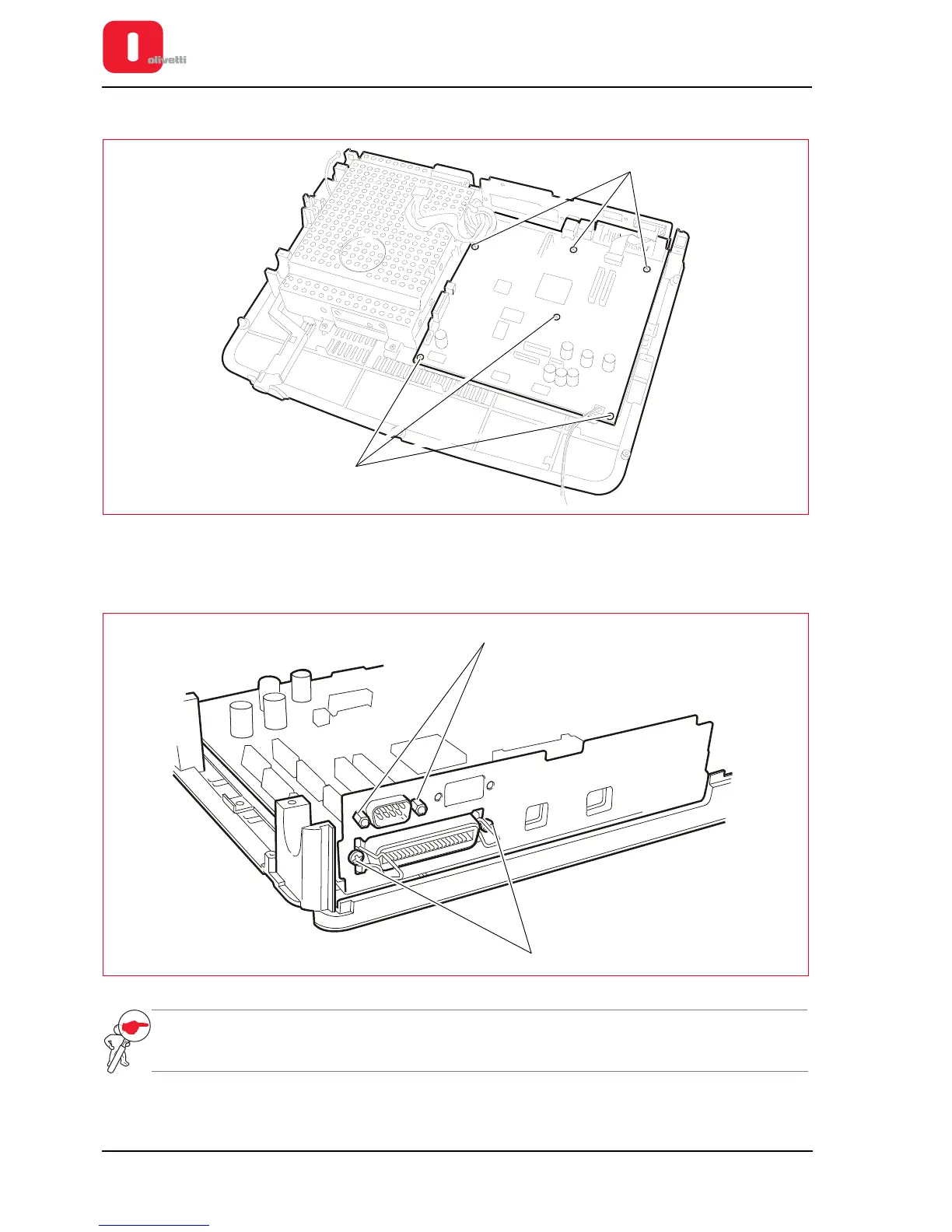 Centronics interface connector and extract the motherboard from the base plate of the printer.