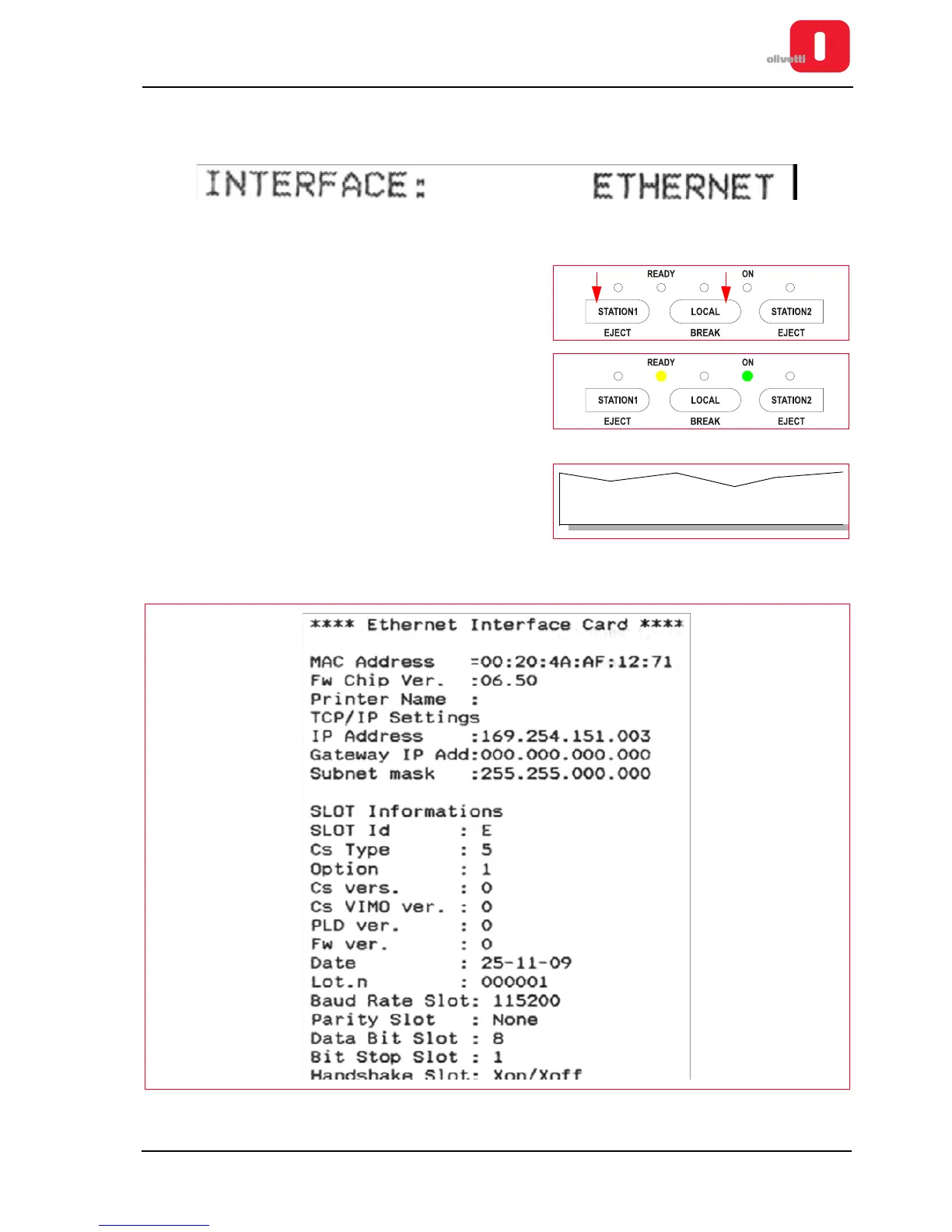5. Press STATION1 key and the printer will print the Ethernet LAN Card settings (insert a new A4 document if