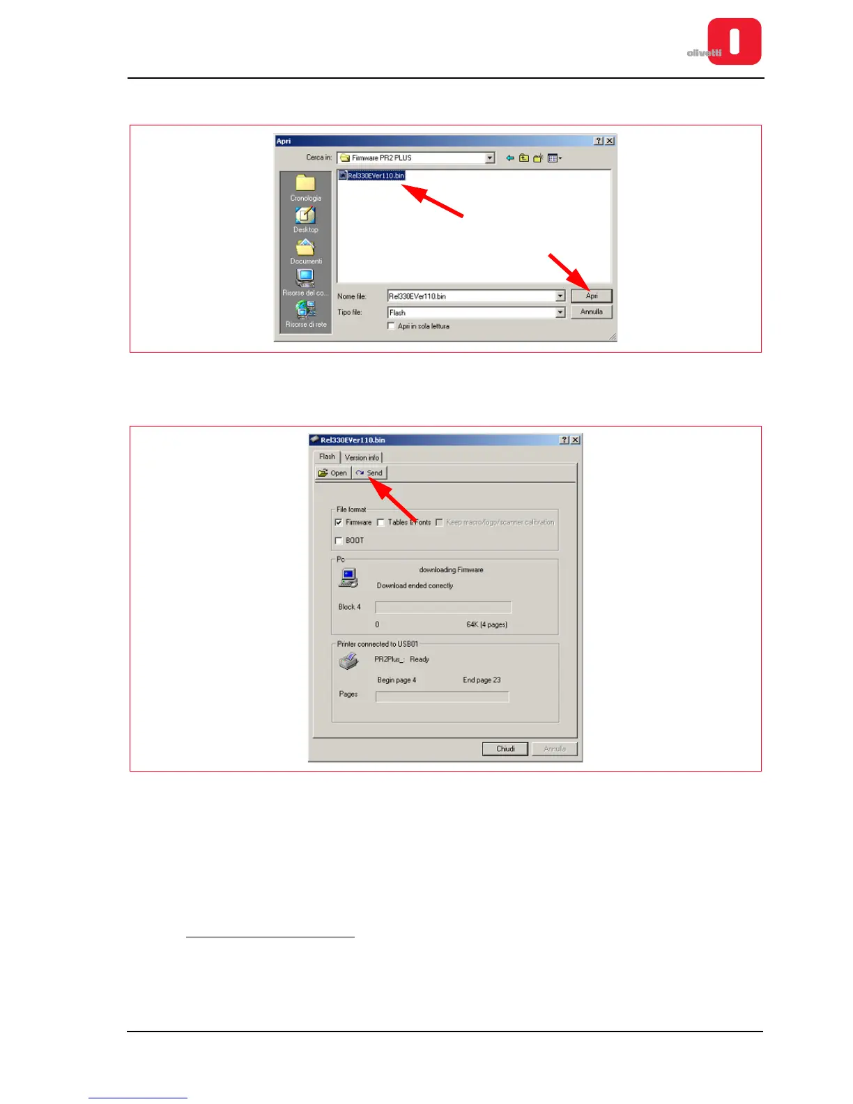 8. Select the file containing the firmware to be transferred, confirming this with the Open key.