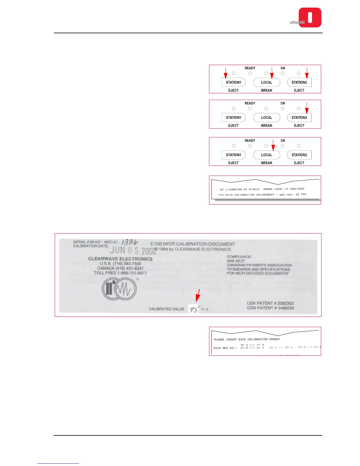 8. Check the MICR calibration value written on the MICR CALIBRATION CHEQUE, coded with spare parts code