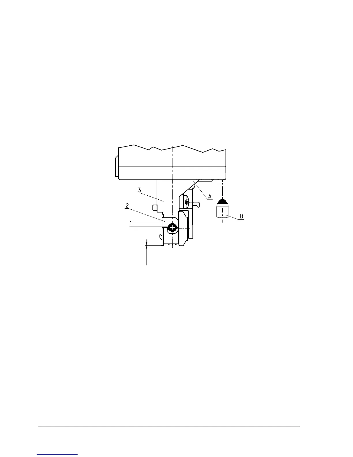 Loosen screw (1) that secures ribbon protection fin (2) onto the head (3) and, using the comparator,