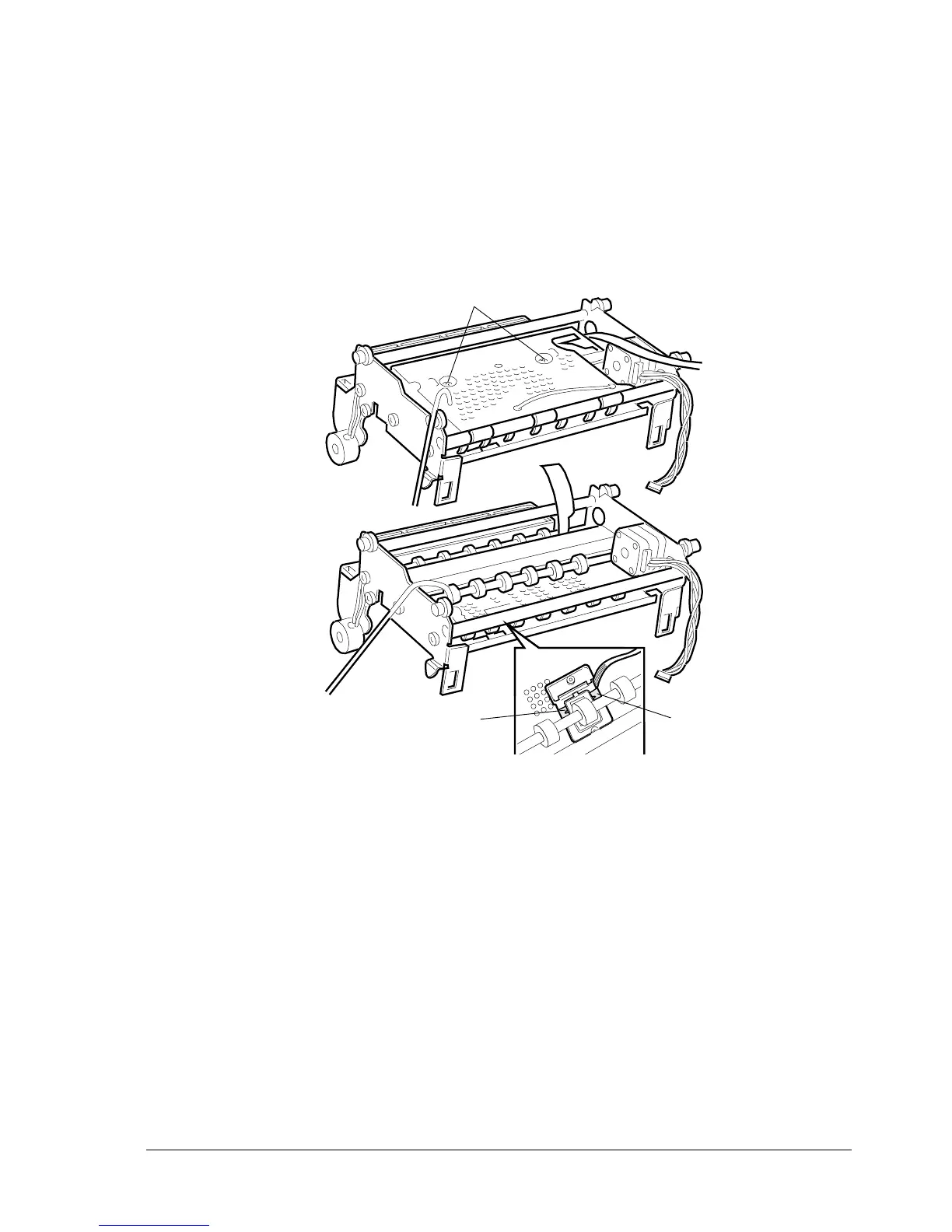 - Remove the rear photosensor flat cable by releasing the two plates (2) that are snapped into the