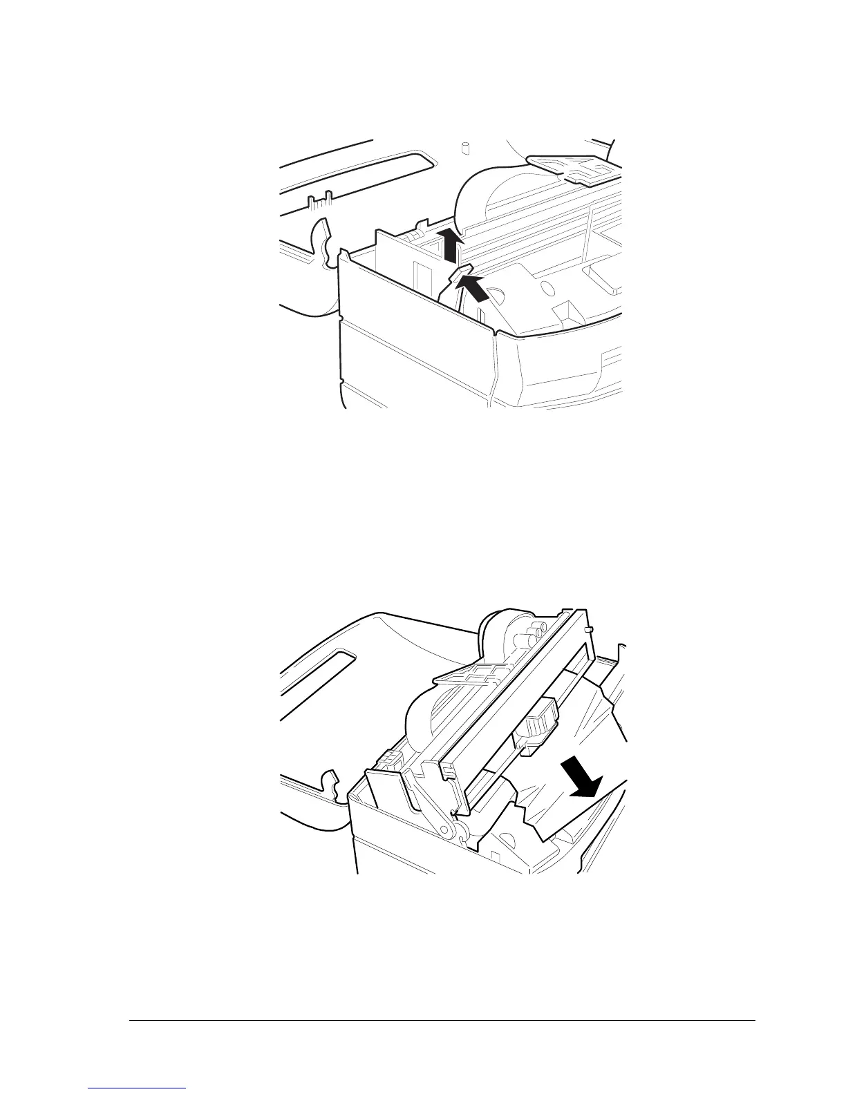 Lifting this lever all the way rises the top part of the printer assembly thus granting access to the paper