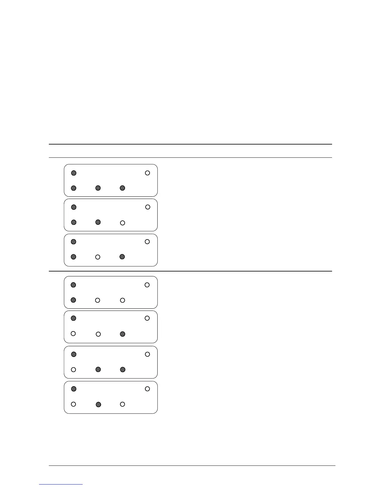 access to the menu indicated by the LED combinations.
