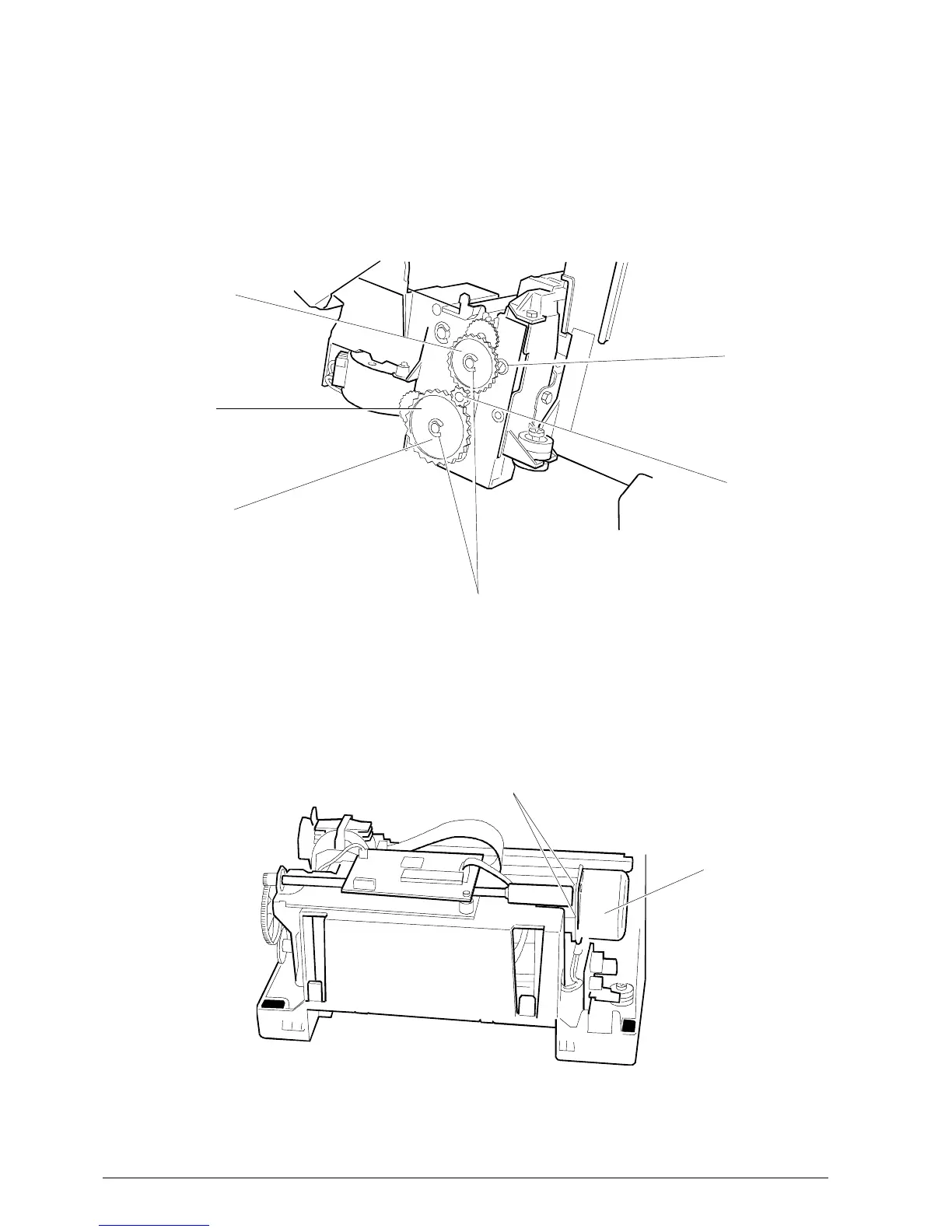 • Remove the line feed motor securing screws 1 and