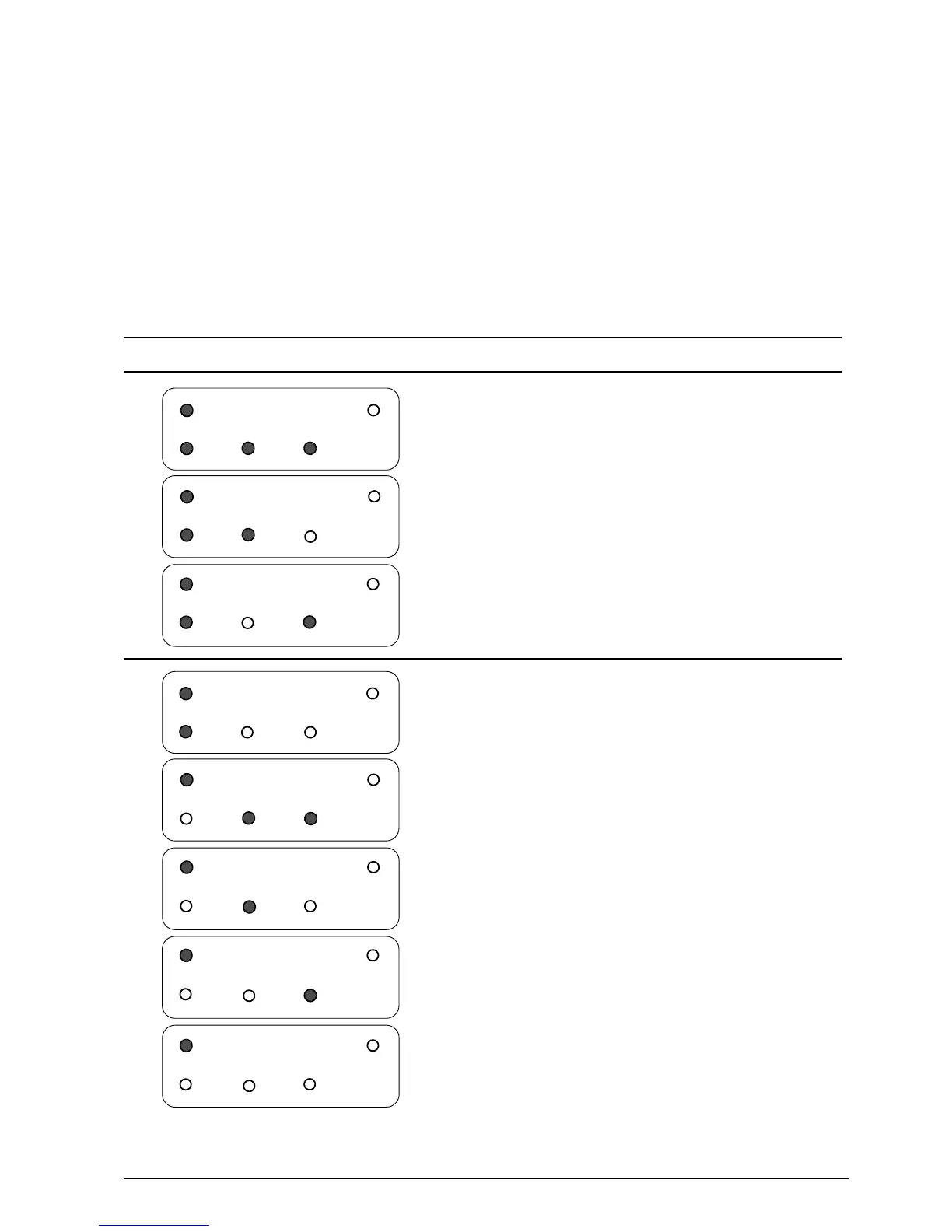 The following table shows the LED patterns