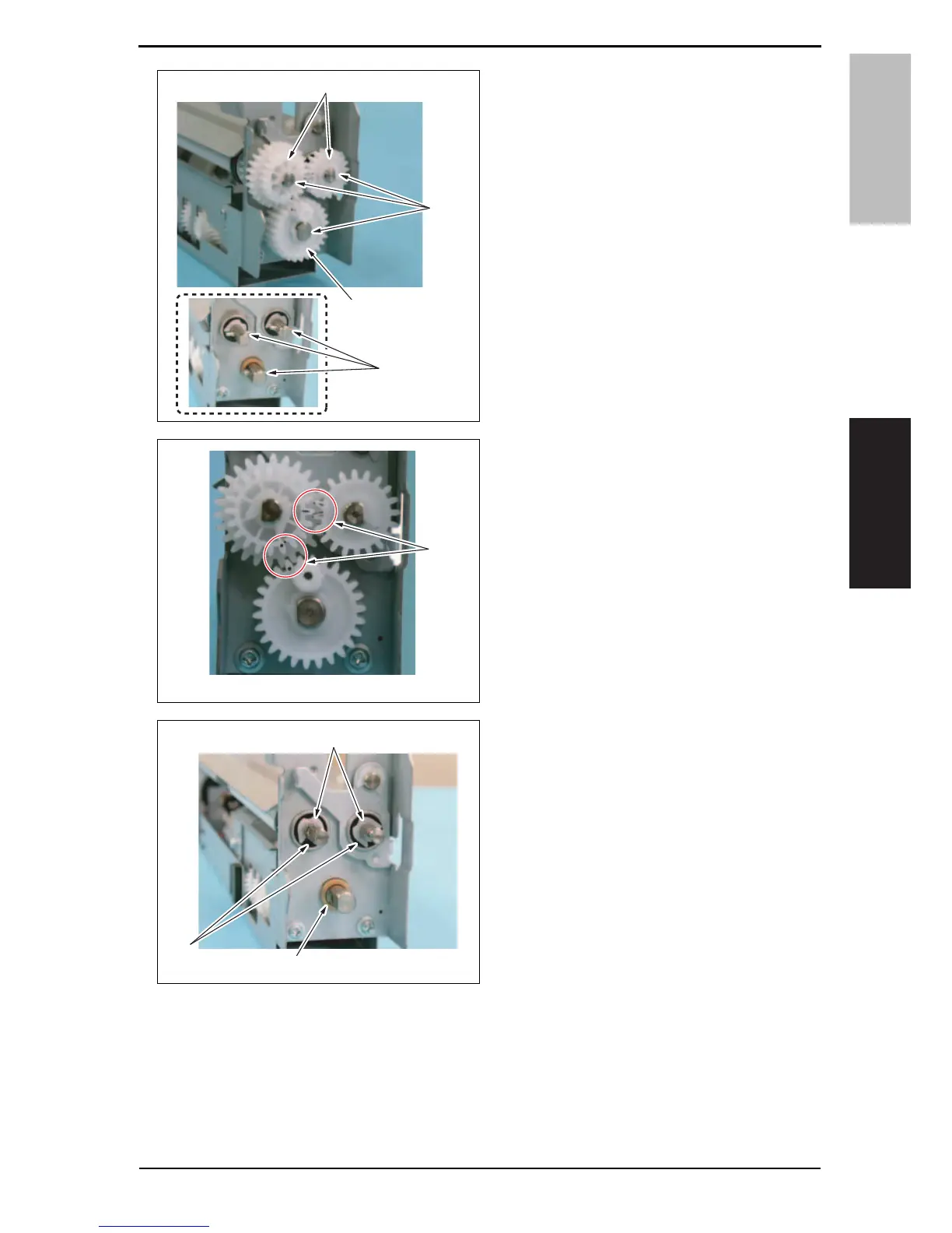 pins [2], and remove three gears [3].