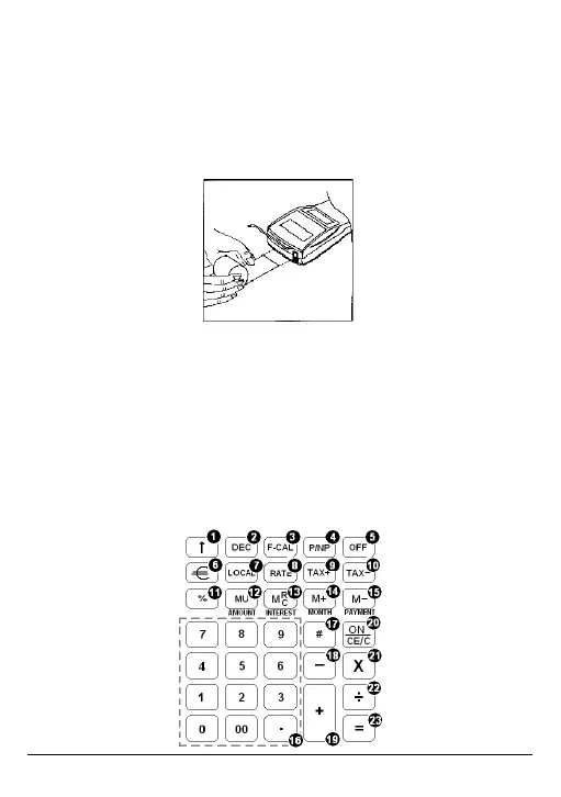 inserir o bordo de entrada do papel na fenda presente atrás da calculadora.