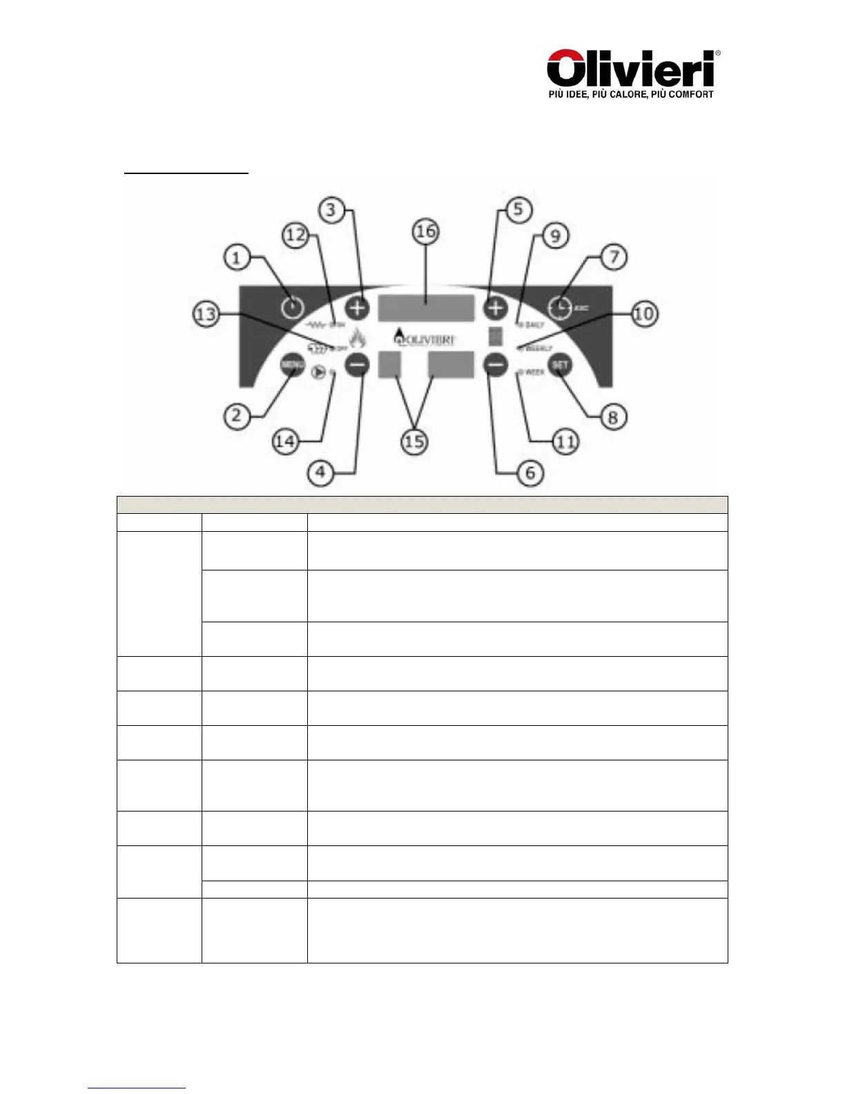 ON/OFF Pressed for around three seconds it allows the heater to be