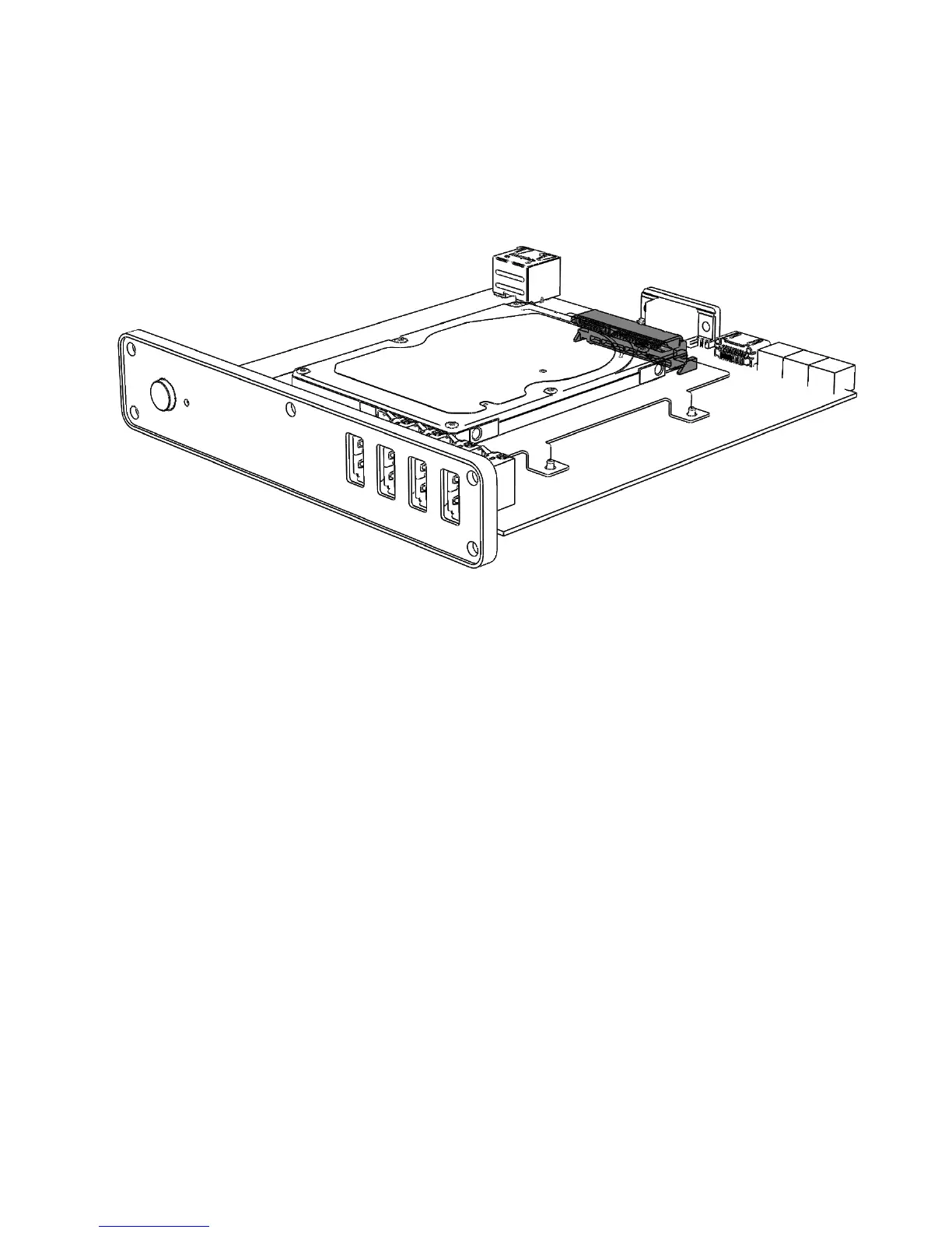 3. Slide the drive bay and attached 2.5” disk into the SATA connector on the Mini PC ensuring the disk is fully