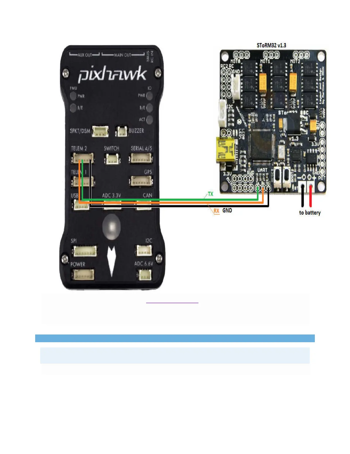 shown above and then plug the other end into one of the Pixhawk’s Telemetry ports