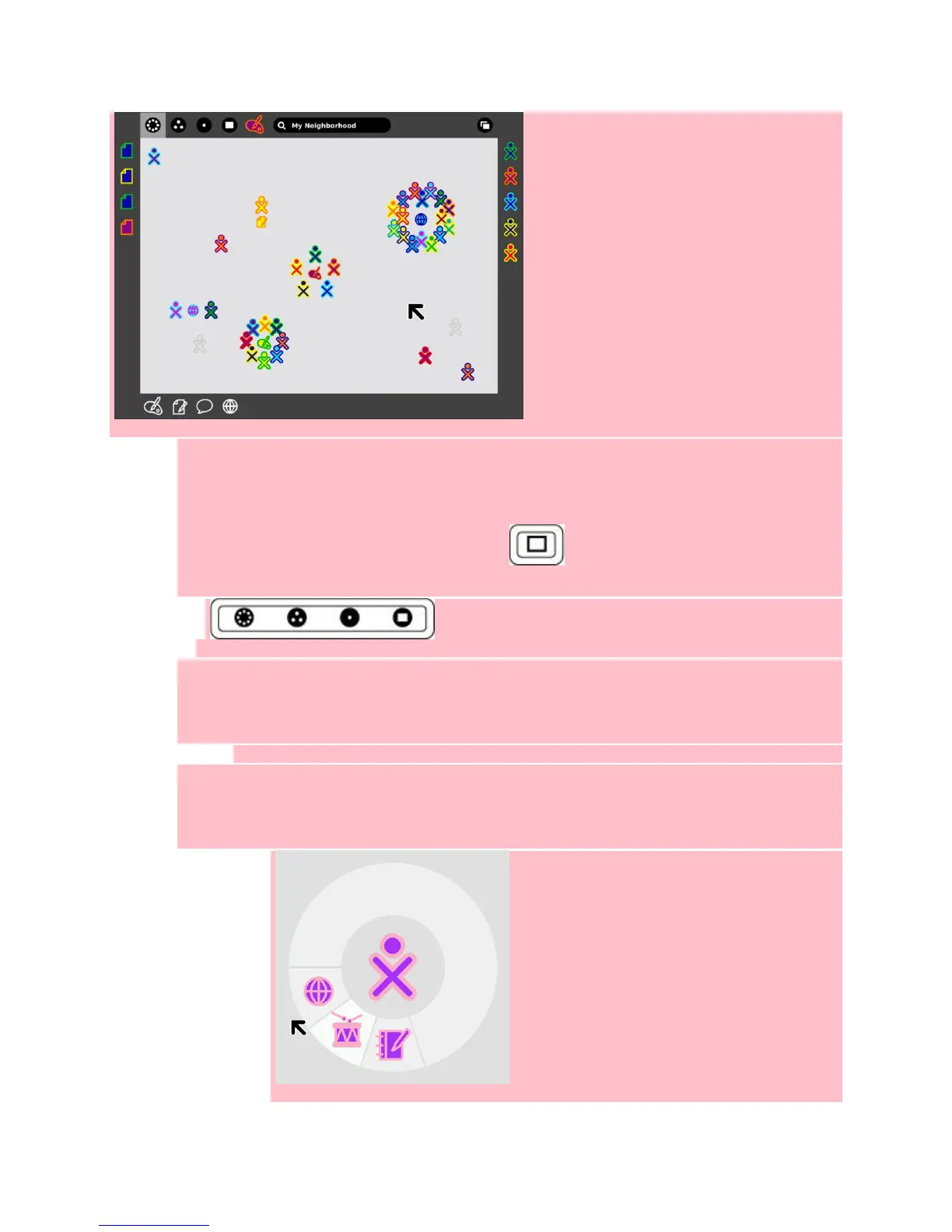 pictures in the top left corner of the frame. The different views are Neighborhood view, Group