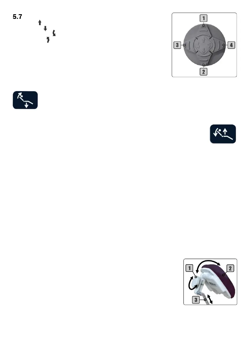 To move backrest and seat: use the joystick buttons 1 to 4, located on
