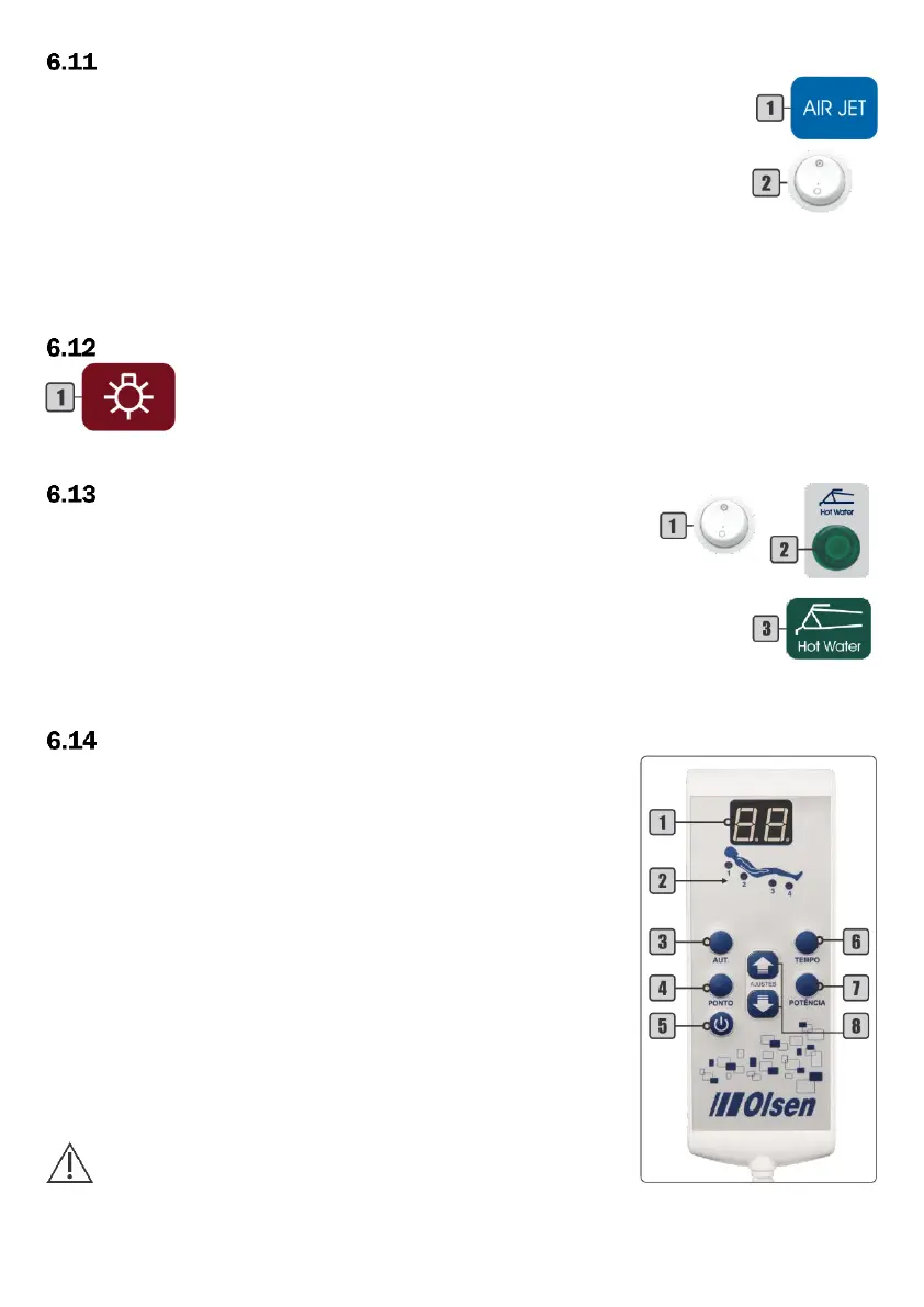 To enable the automatic massage system: press the “AUT” key (3). The