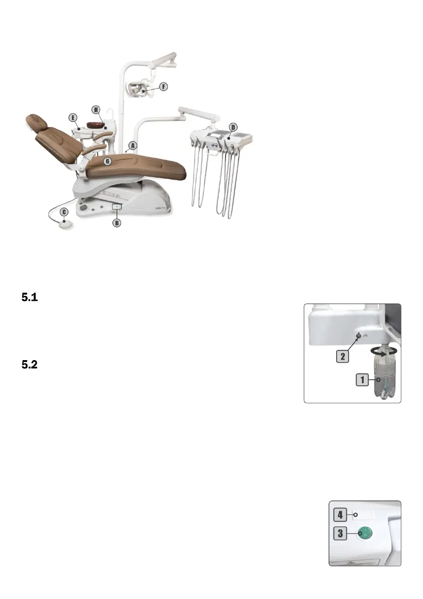 5º - Abra la válvula de presión (2) y verifica si el tanque de agua (1) está bien acoplado, sin fugas;