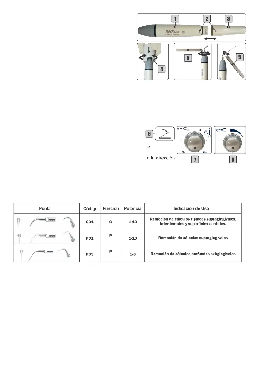 2 - No exceda el límite de potencia para cada punta. Eso podrá dañar la punta y el ultrasonido.