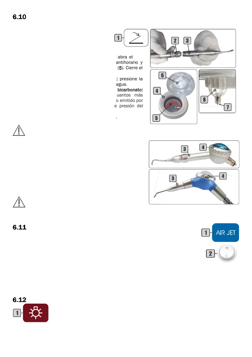 sistema Air Jet hasta que se presione la tecla On/Off o cuando sea regresada la pieza de mano a su soporte.