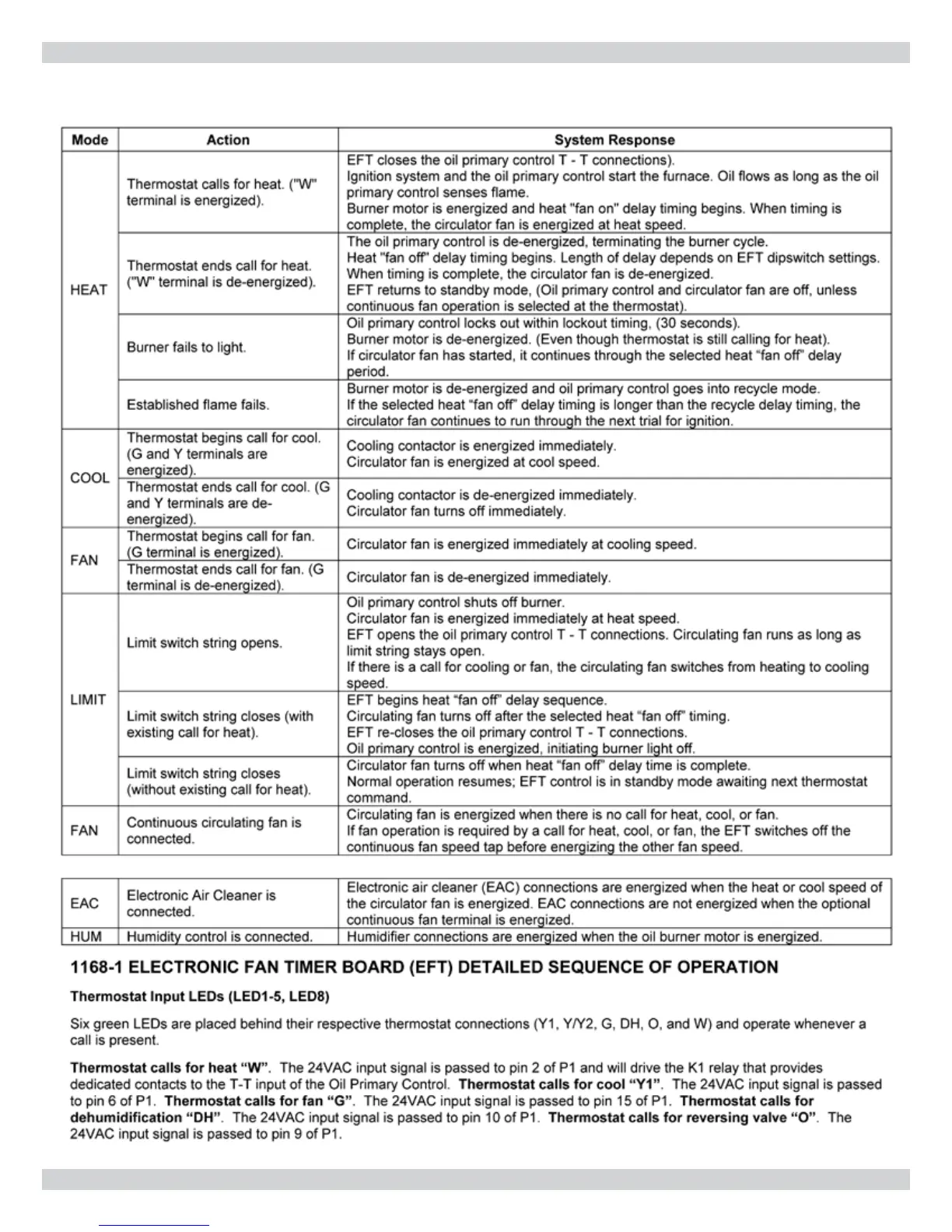 Table 9: 1158-120 Electronic Fan Timer Board (Eft) Detailed Sequence Of Operation