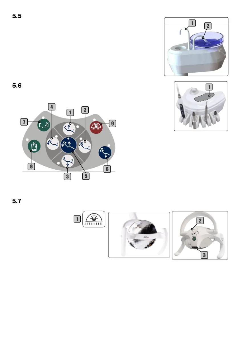Note: the layout of the assistant module may vary according to customer order or available handpieces.