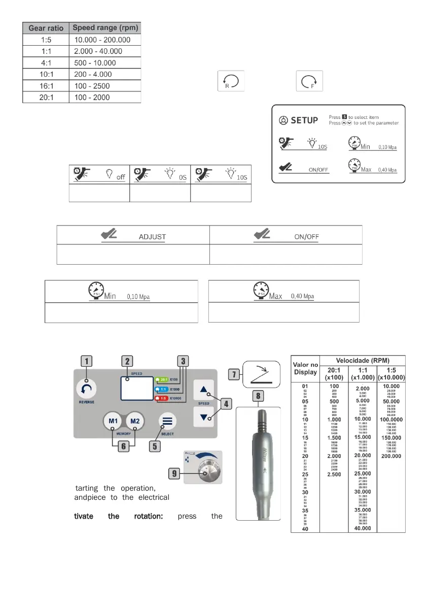 Note: the micromotor system preset by the factory according to the internal equipment pressure. It is not