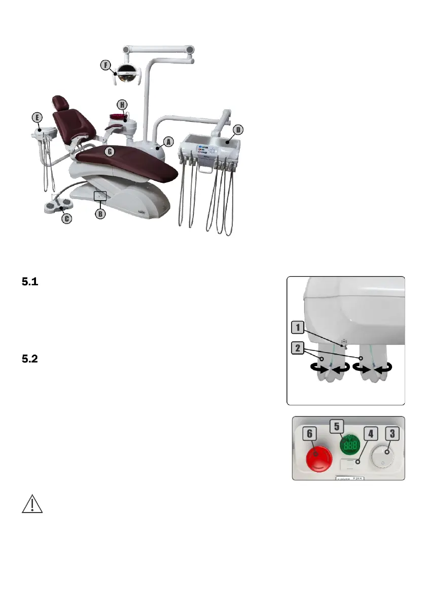 1º - Encienda el interruptor On/Off (3) en la base del sillón;