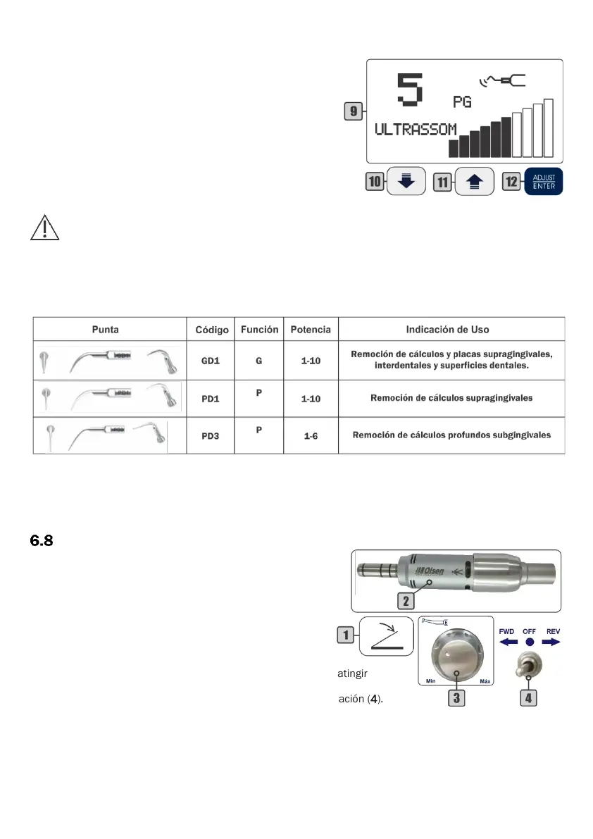 2 - No exceda el límite de potencia para cada punta. Esto podrá dañar la punta y el ultrasonido.
