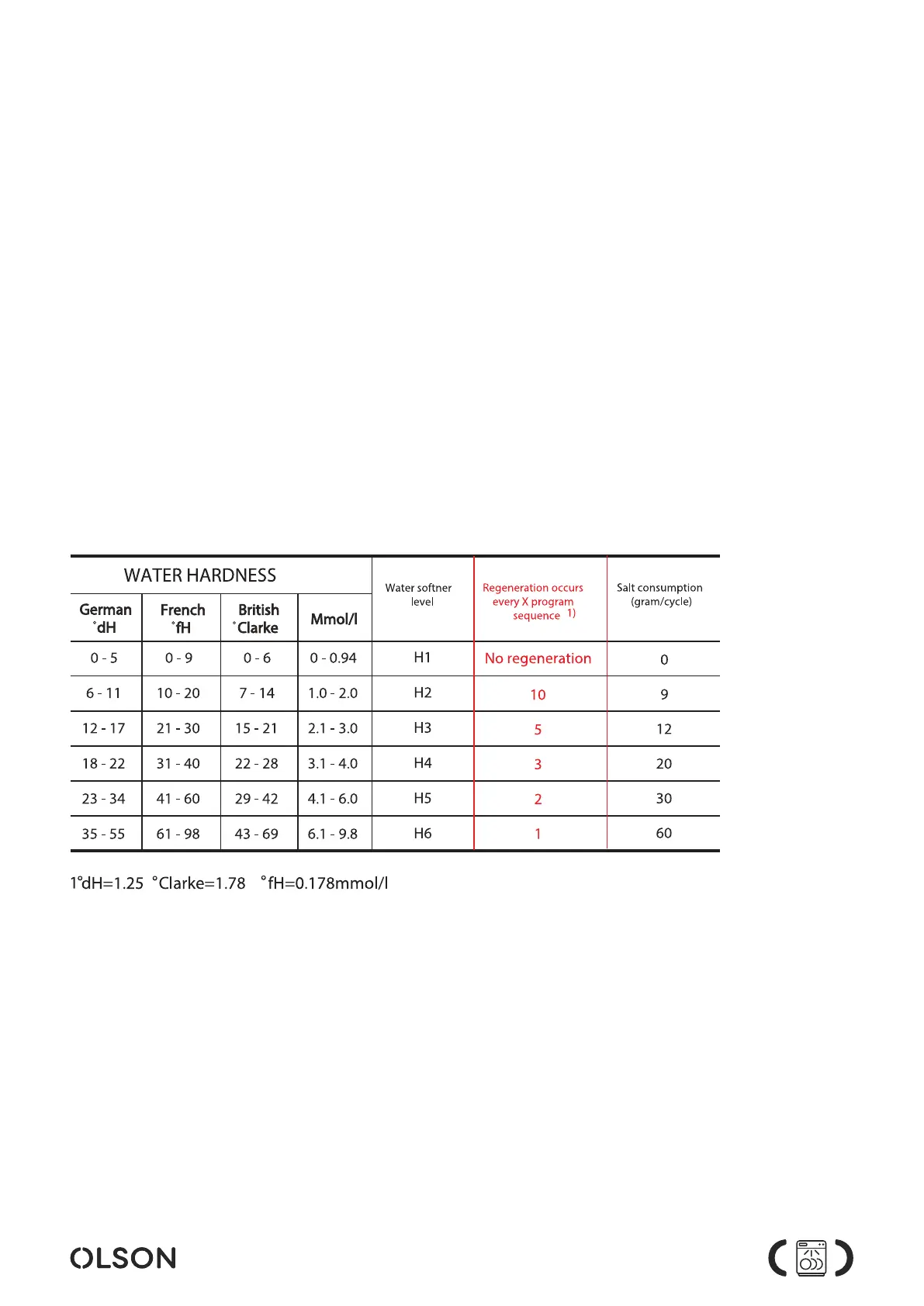 El lavavajillas está diseñado para permitir el ajuste de la cantidad de sal consumida en función de la dureza del
