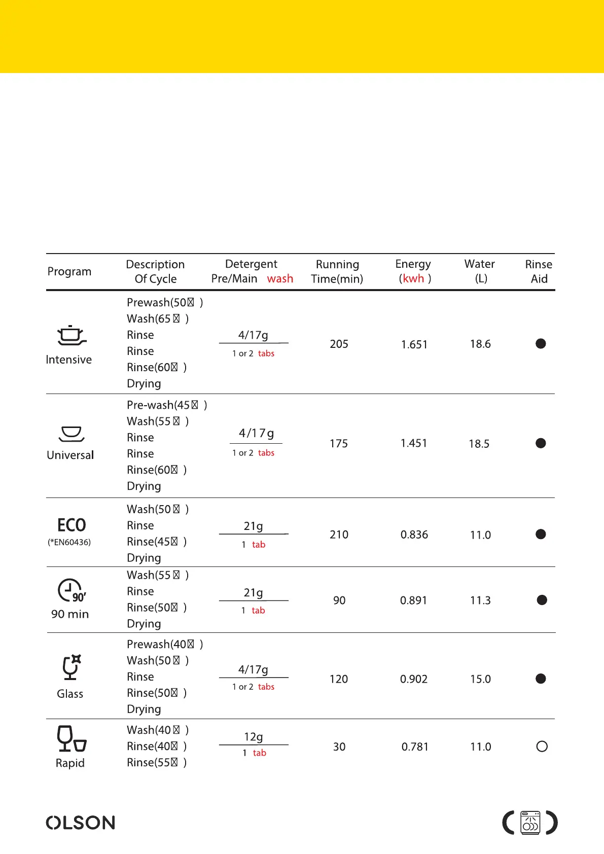 consumo y la duración del programa son solo indicativos excepto para el programa ECO. () indica que el