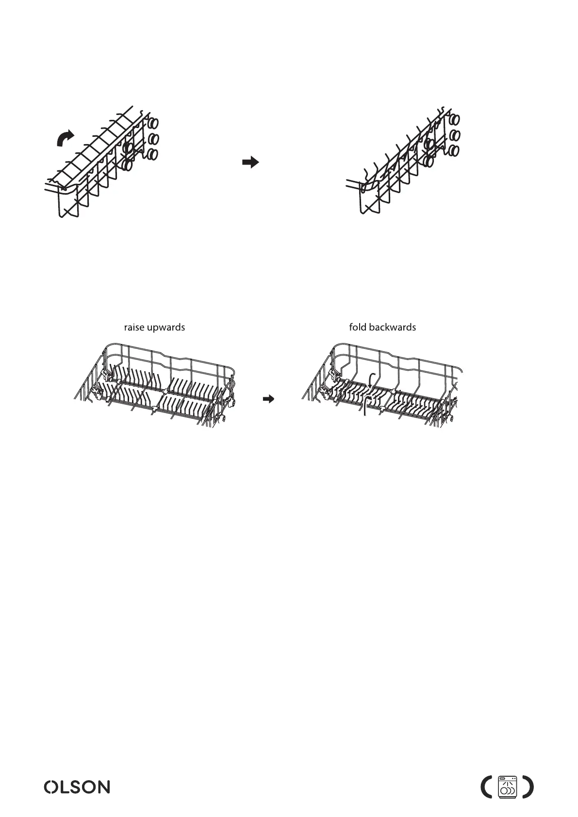 To make room for taller items in the upper basket, raise the cup rack upwards.