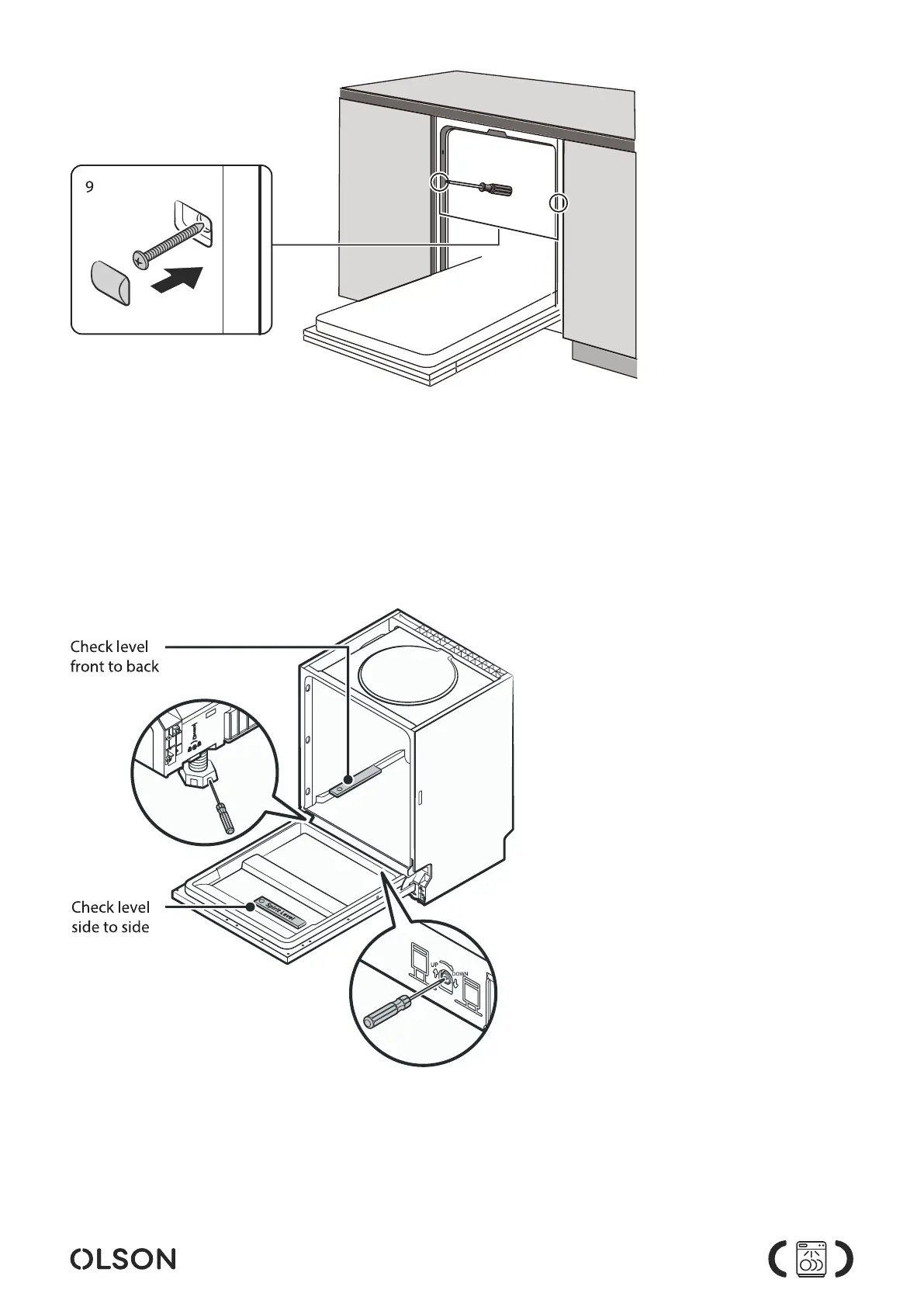 3. When level the dishwasher, please pay attention not to let the dishwasher tip over.