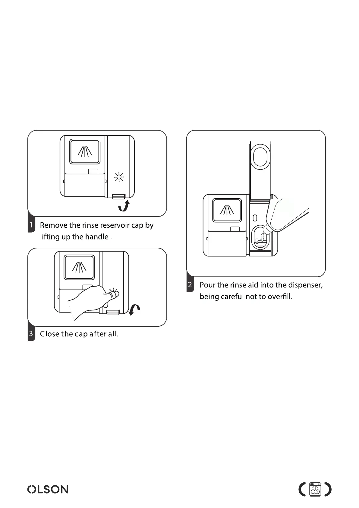 • Dishwasher detergent is corrosive! Keep dishwasher detergent out of the reach of children.