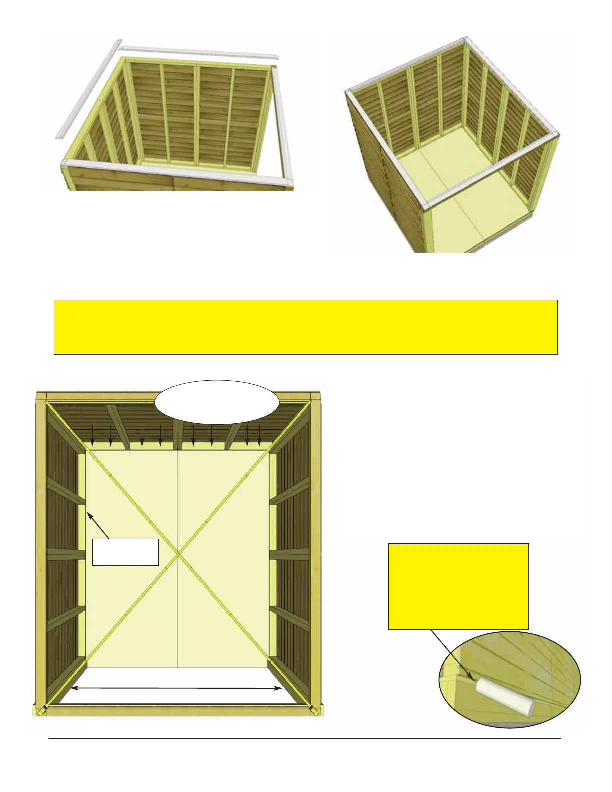 Important: Prior to fastening walls and installing rafters, take time to confirm your walls are level,