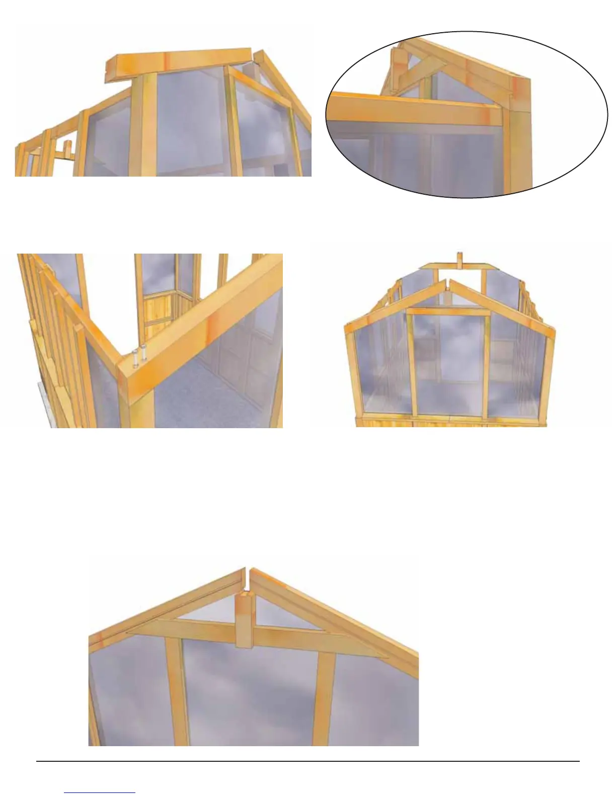 and tighten with 9/16” socket. From the inside, attach Gable Support Frame to Rafters with