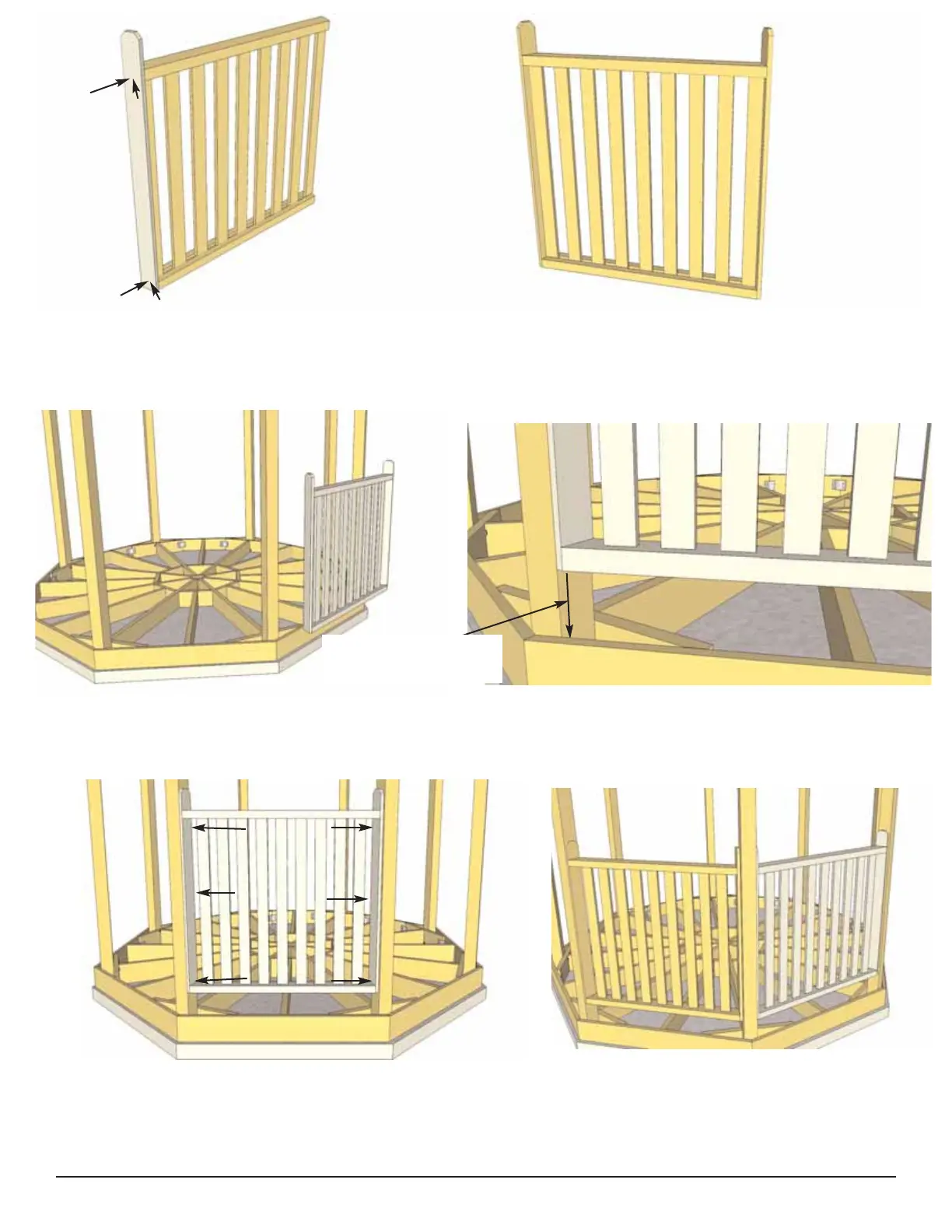 Important- Drill 1/8” Pilot Holes in End Caps to prevent splitting. Be sure to drill into Handrails.