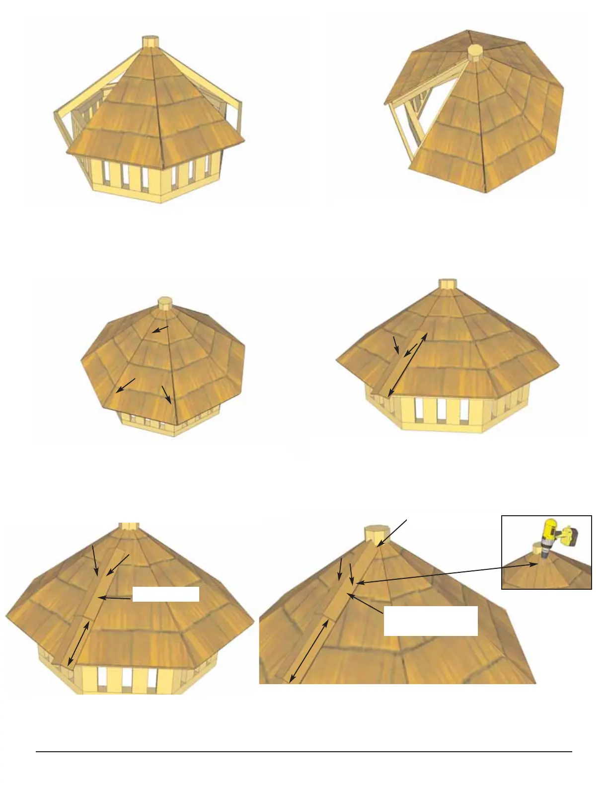 100. Locate 16” long Cupola Ridge Cap and