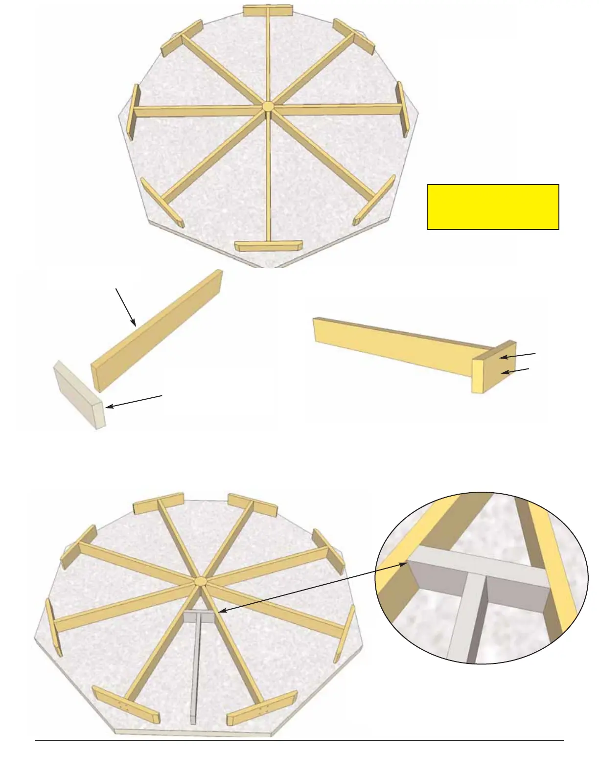 9. Locate and position a Mid Floor Joist (42 3/8” long) and an Interior Core Brace (12” long). Make