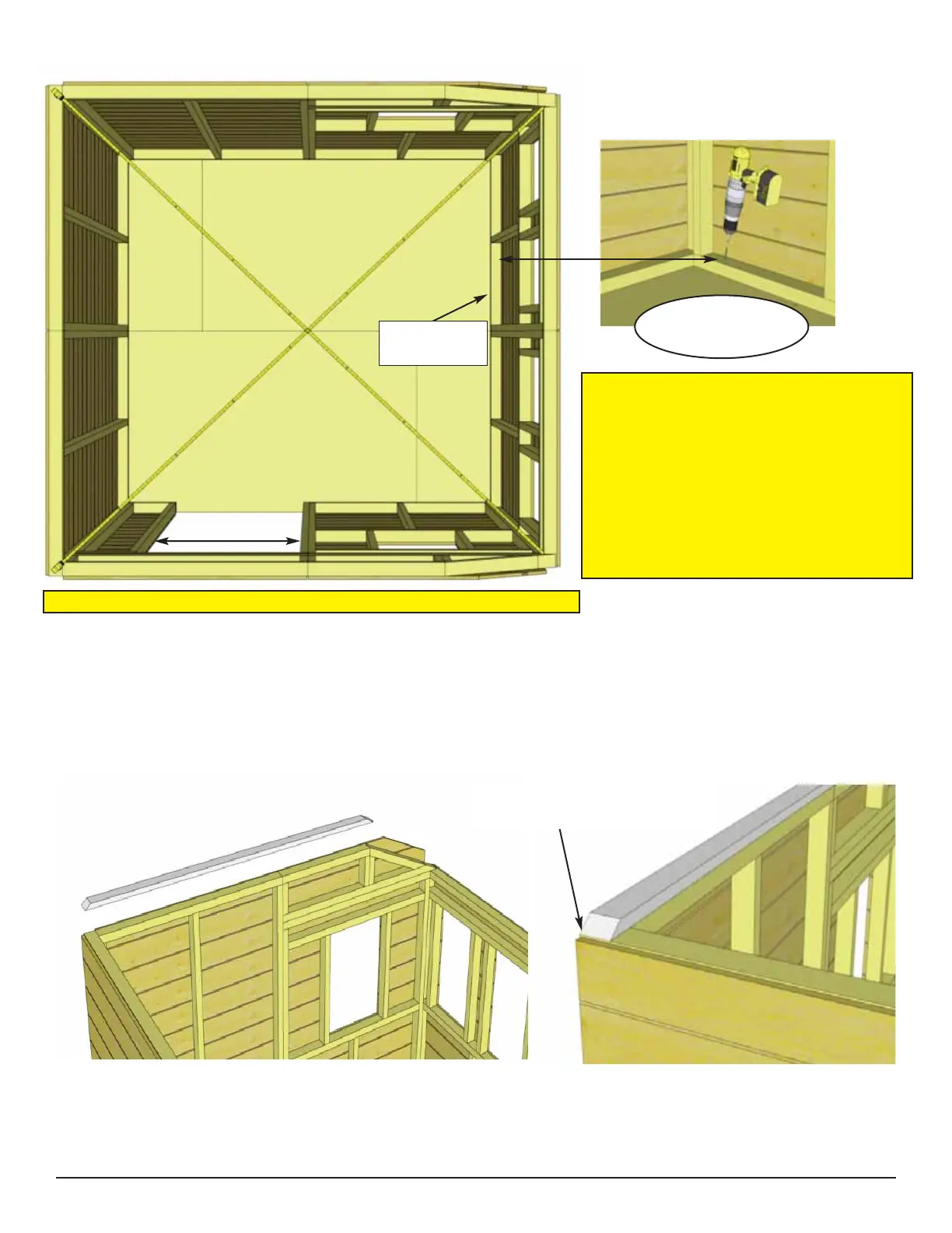 24. When all walls are attached together, check alignment with the floor. Bottom wall framing should