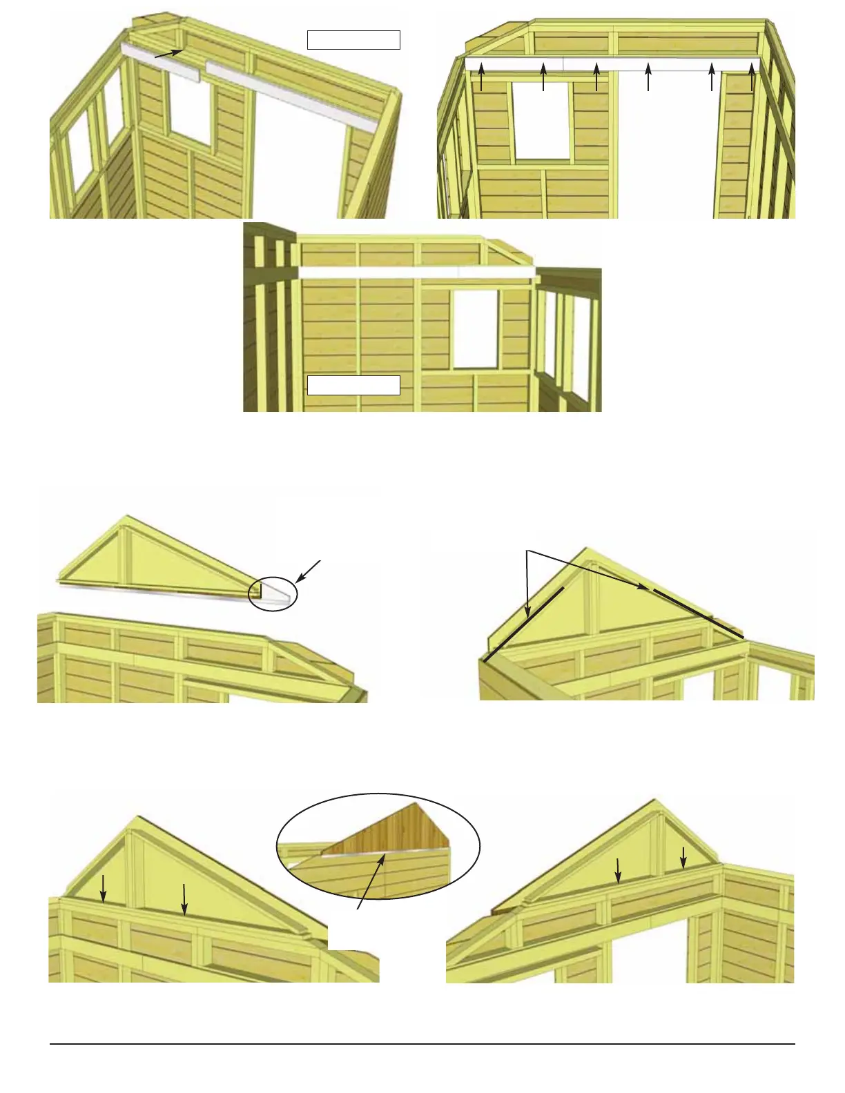 33. When Gable wall is positioned correctly, tack in place with 2 - 2” screws. Adjustment to Gable