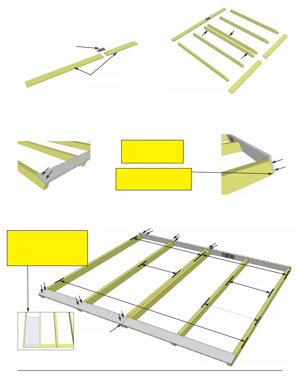 flat level surface as pictured. Screw doubled up rafters together with 3 - 2 1/2” screws. Note: Soffits